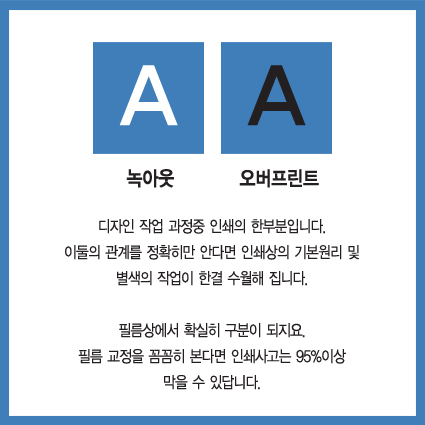 글씨가 흰색이면 오버프린트뜨면 걍 파랑색 네모만 나와요 ㅋㅋ