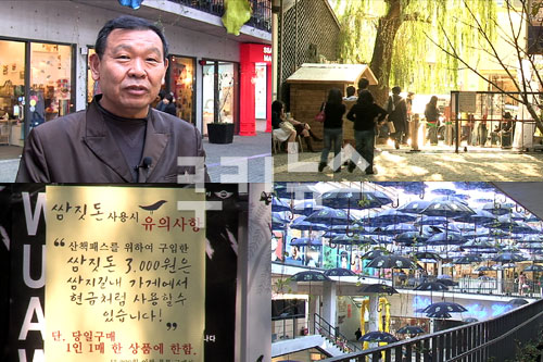 매표소 안쪽은 3000원을 내고 평소와 다름없이 쇼핑을 즐기는 사람들이 있고, 매표소 밖에는 3000원을 못 내겠다며 불만을 토로하는 사람들이 있고…. 모두에게 열려있고, 함께 즐기던 문화공간이 바리케이트를 사이에 두고 서로 다른 양상을 표출하고 있다. ‘쌈지길 유료화’ 이대로 좋은 것일까.