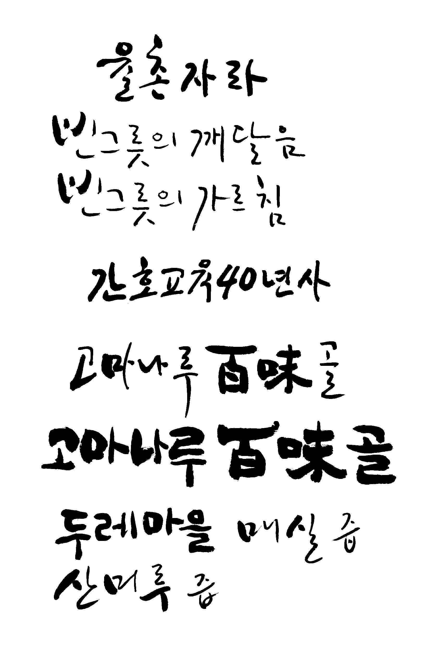 캘리모둠 예인 일반 5 7532 2009.02.21 00:21 의뢰하신 캘리를 모아 봤어요. 그리고 어디에 사용하것인지, 언제까지 필요 하신지, 원하시는 캘리 스타일은요? ( 참고 할 캘리그래피 샘플을 같이 올려 주시면 더 좋겠죠 ) 그리고 작업된 자료를 올려주시면 다음 작업에 도움이 많이 될듯 싶네요.