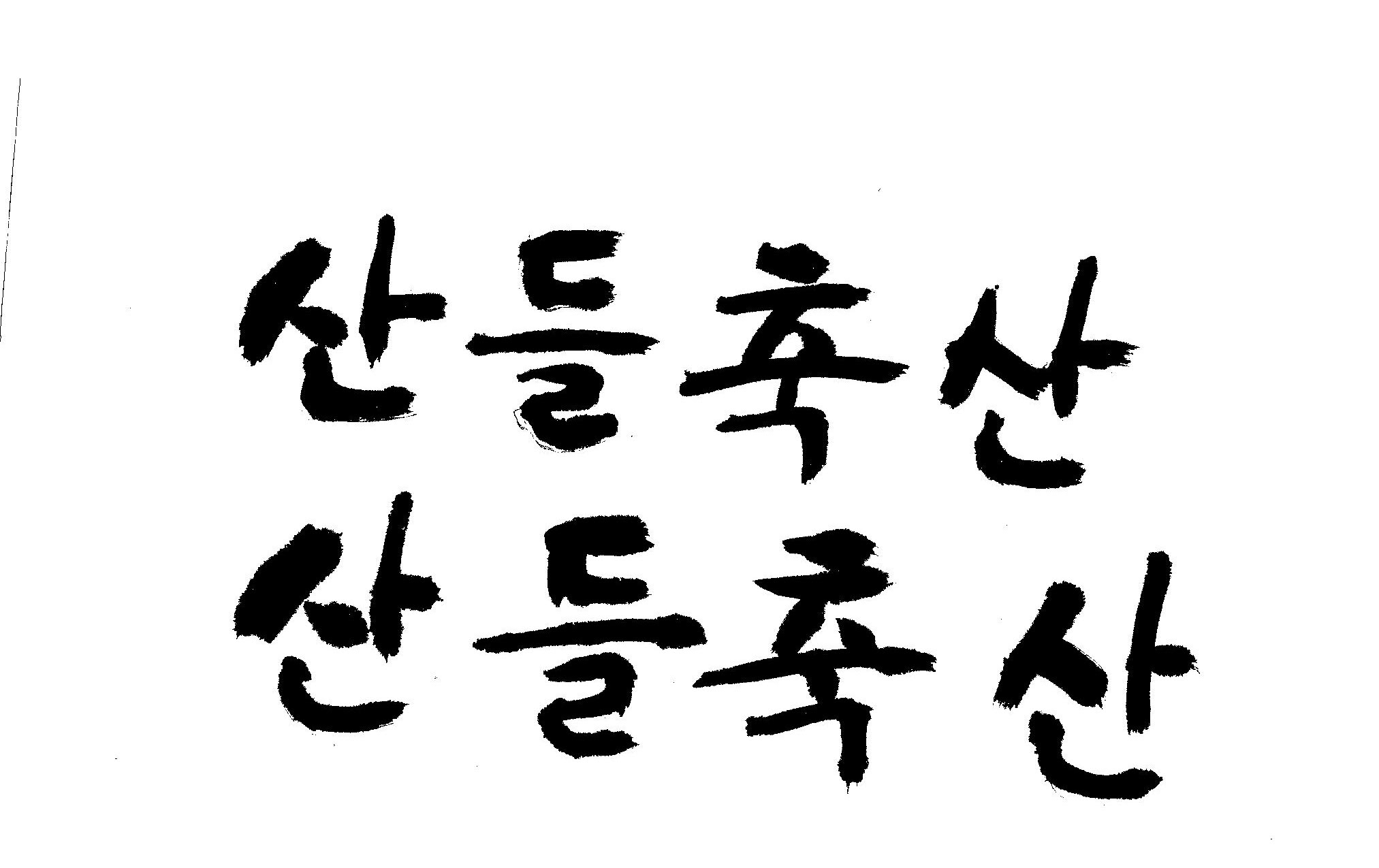 [급]붓서체로 "산들축산"글 캘리부탁드립니다. 김철호 일반 0 7967 2009.02.16 14:48 > > > > > > > > > "산들축산" 붓으로 쓴것처럼 캘리 부탁드립니다. 유려체 말구요 절말 급합니다. 부탁드립니다 참고로 JPG올립니다. 이와 비슷한거요... > > > > > >