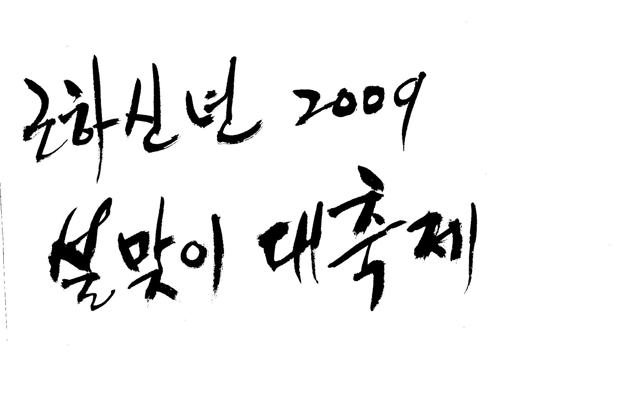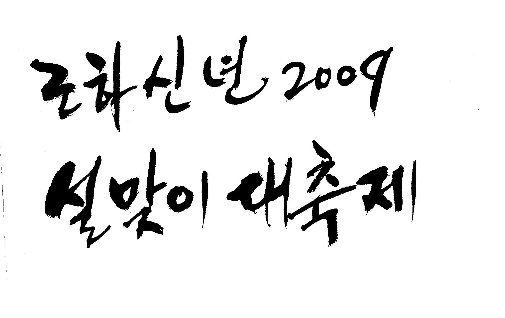 근하신년 2009 설맞이대축제 캘리 부탁드려요. 김철호 일반 3 16693 2009.01.14 10:45 > > A3 전단지 타이틀로 쓰려고 하는데요. > > ''근하신년 2009 설맞이대축제'' 캘리 부탁드립니다. > > 많은도움이 되주셔서 감사합니다. > > 유용하게 쓰세요..