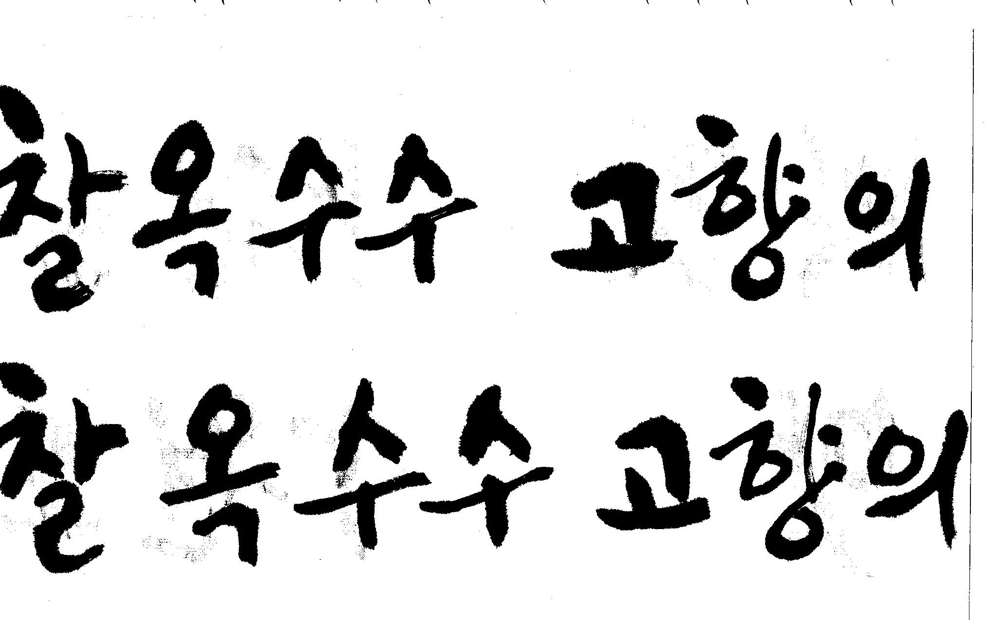 캘리고수님.. 캘리 부탁드립니다. 김철호 일반 1 10818 2008.10.31 15:44 > > 강원도 > 찰옥수수 > 고향의 맛 > > 이상의 문구 입니다. > 캘리 고수님들 시간되시면 도움 부탁드립니다.. > 유용하게 쓰시길 , 스캔이 깨끗하지 못해서 수고 좀 하셔야 겠네요.. "맛"이 라는 글자가 잘 않나와서 따로 올립니다.